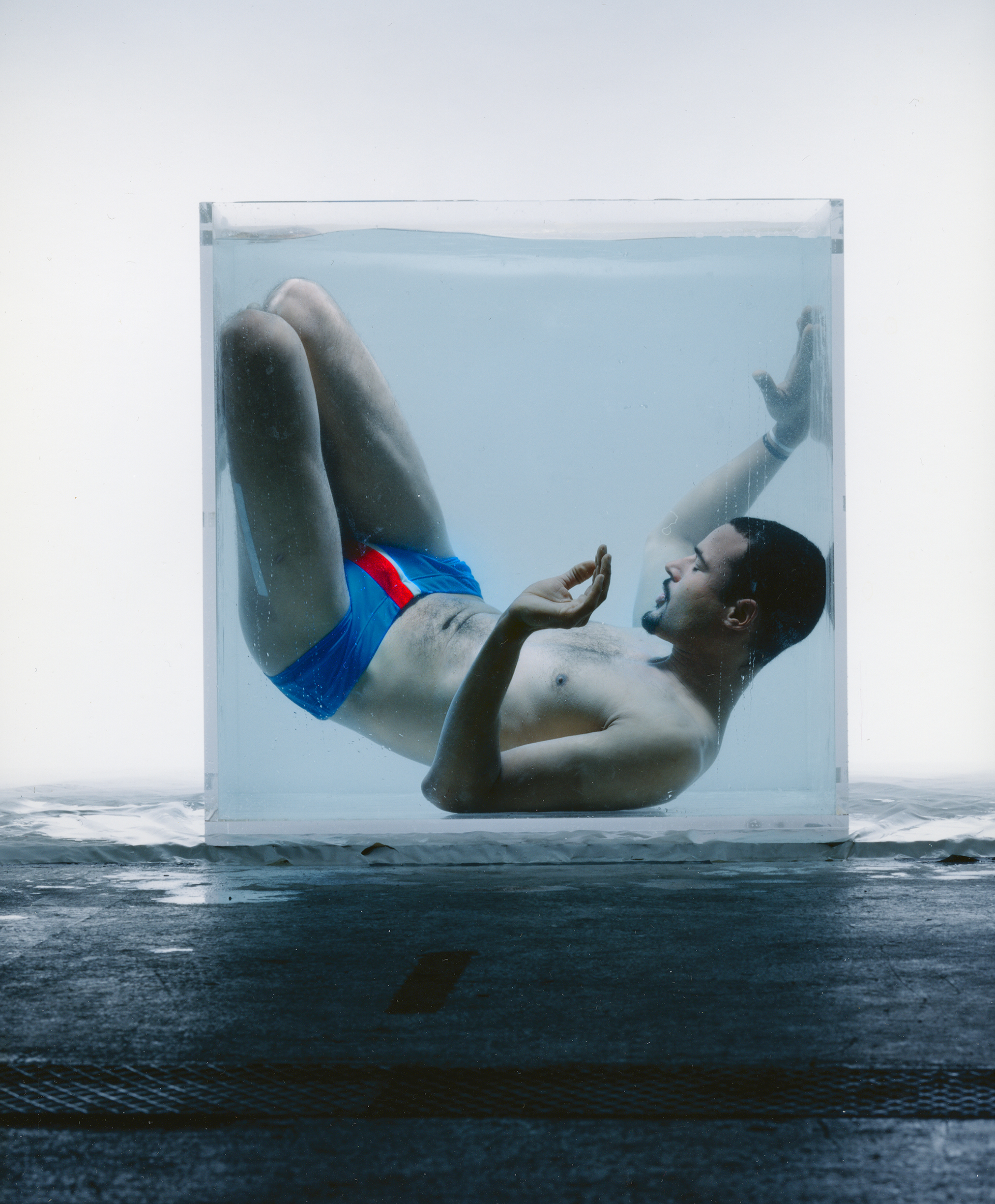 Fasziniert von Sportswear- und High-Tech Materialien, und inspiriert vom Künstler Blinki Palermo mit seinen abstrakten Formen und satten Farben.