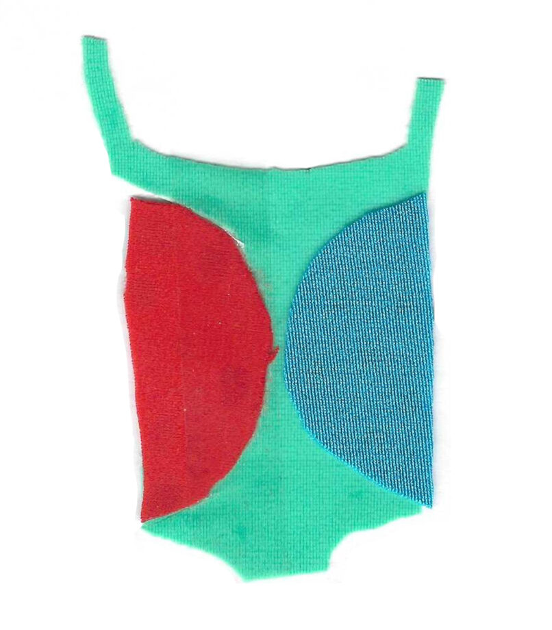Durch die zwei-und drei farbigen Kreisformen und Farbflächen in meiner Kollektion, sind spannende geometrische Schnittlinien entstanden, die der Figur eine homogene, weibliche Silhouette verleihen.
